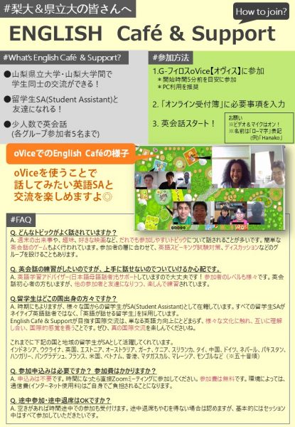 2021年度後期もEnglish Café、English Supportは開催予定ですので、