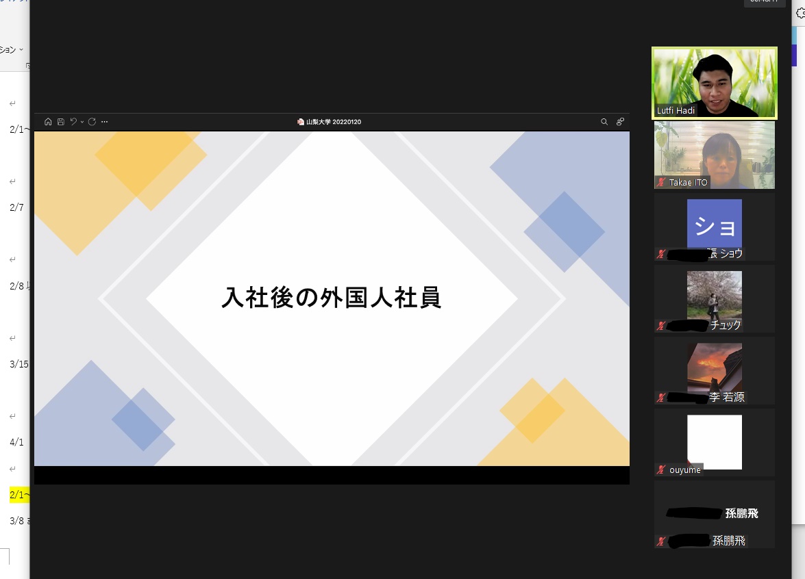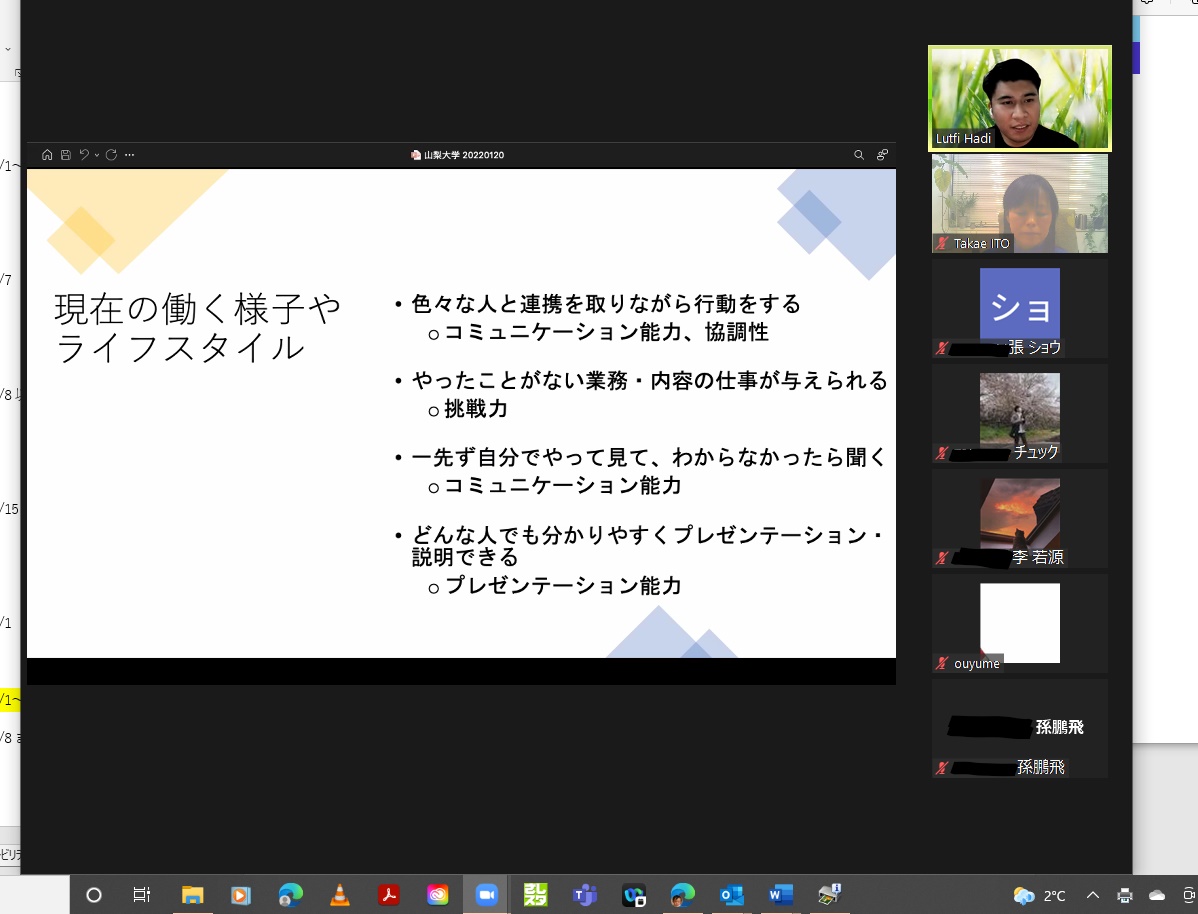 令和4年1月20日(木)卒業留学生による就職体験談会を開催しました。