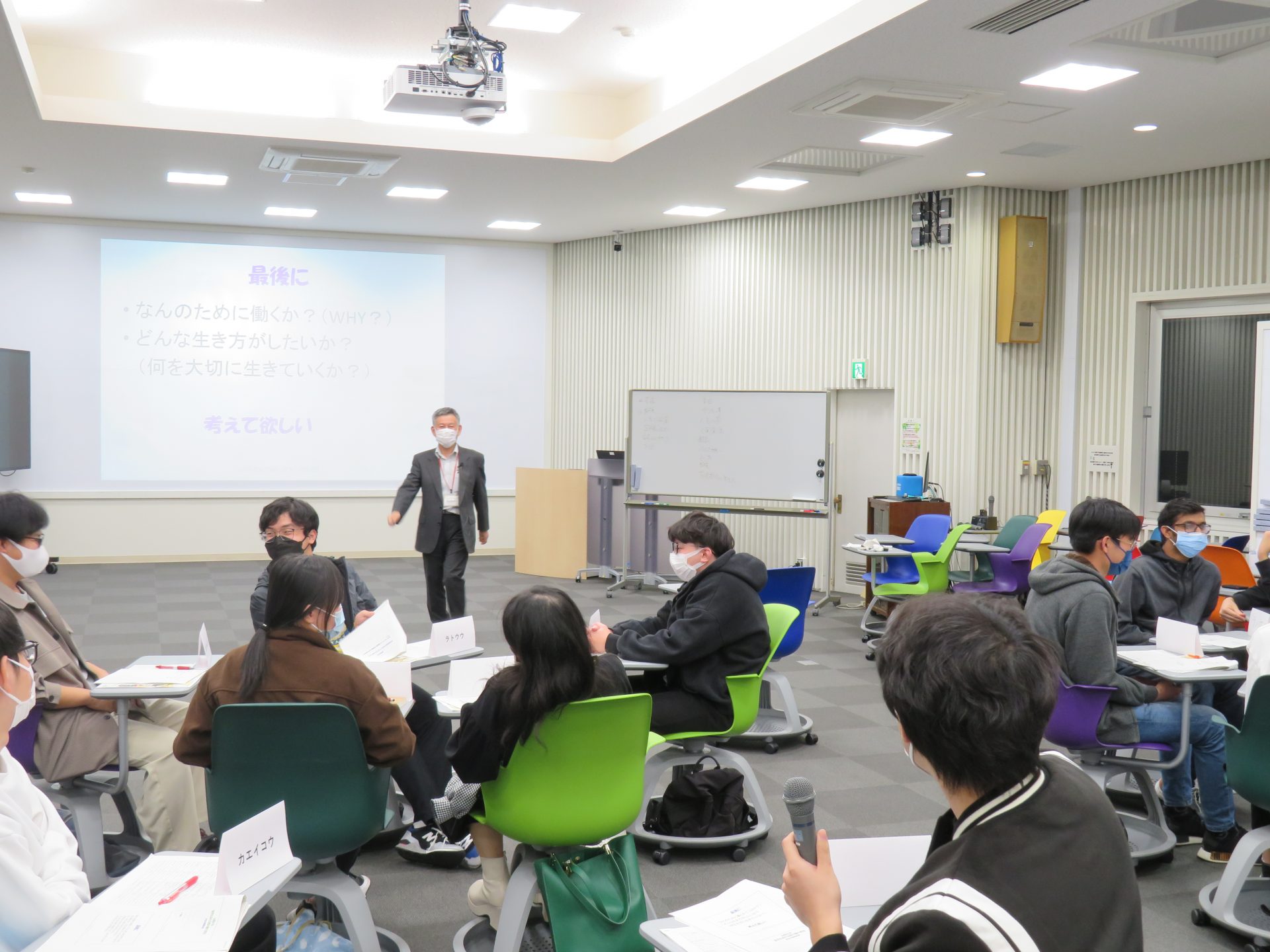 講義の最後には、グループディスカッションを行い、働く目的や意味などを話し合いました。
