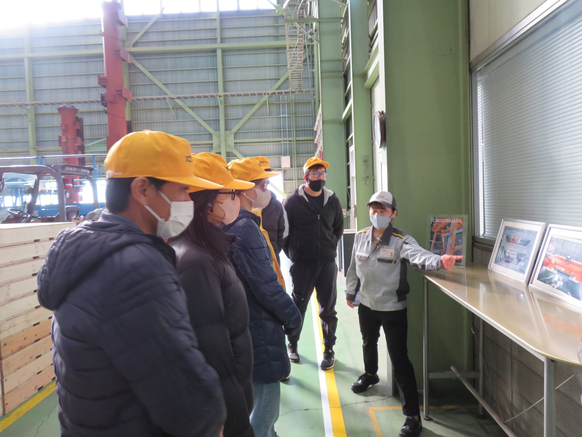 今回は、中国、バングラデシュ、ウクライナからの留学生が参加し、母国でも見たことがあるクレーンがキトー様で作られていることを知り、身近に感じながら