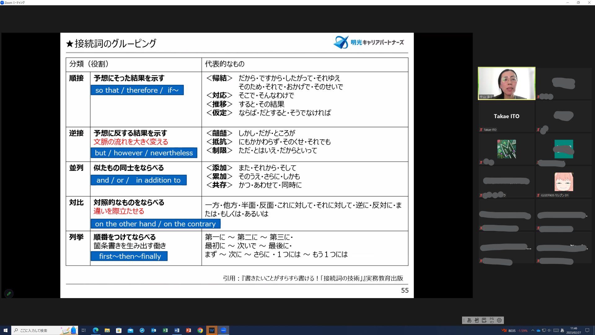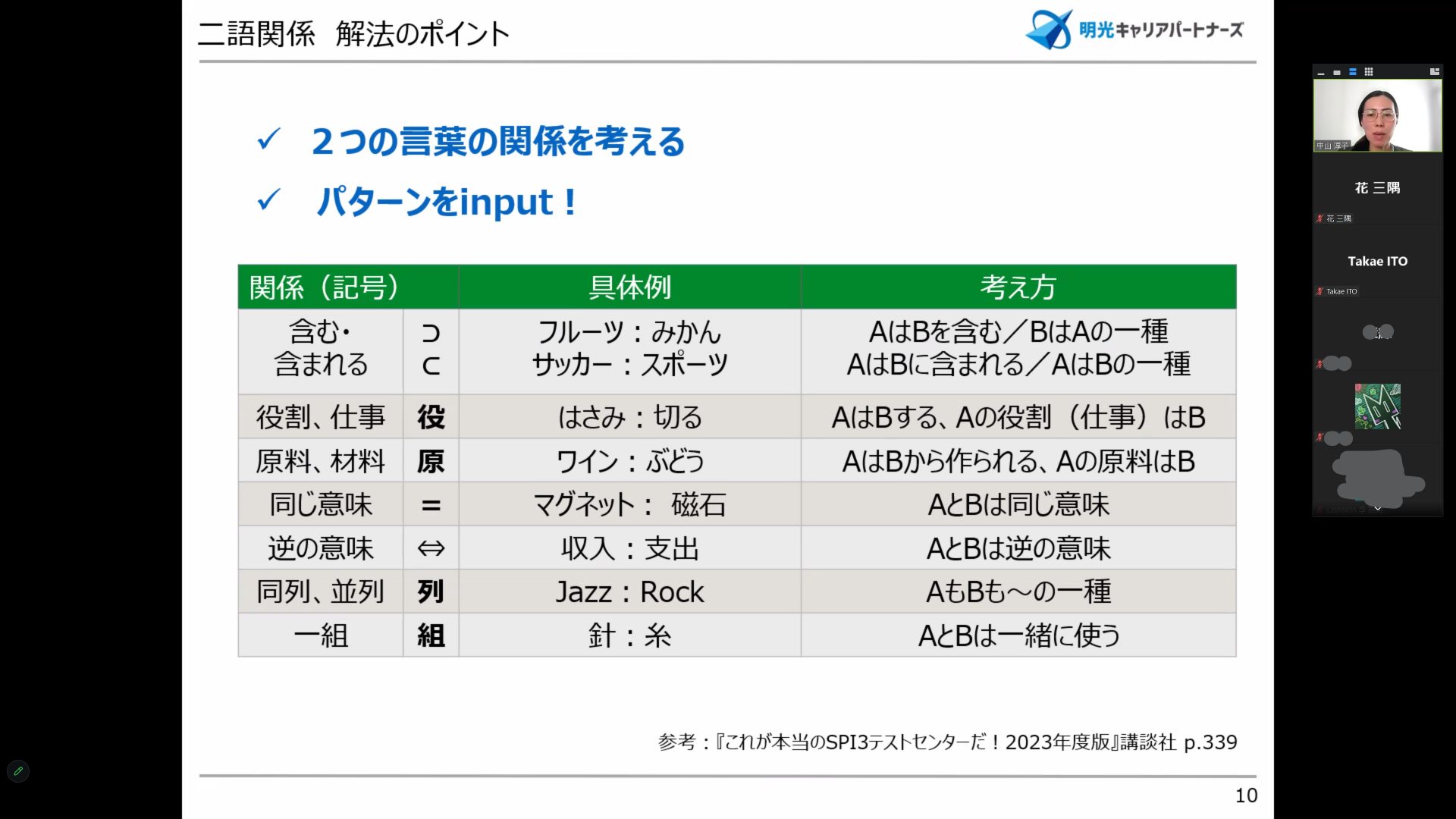 今回も、明光キャリアパートナーズの先生方に講師を務めていただきました。