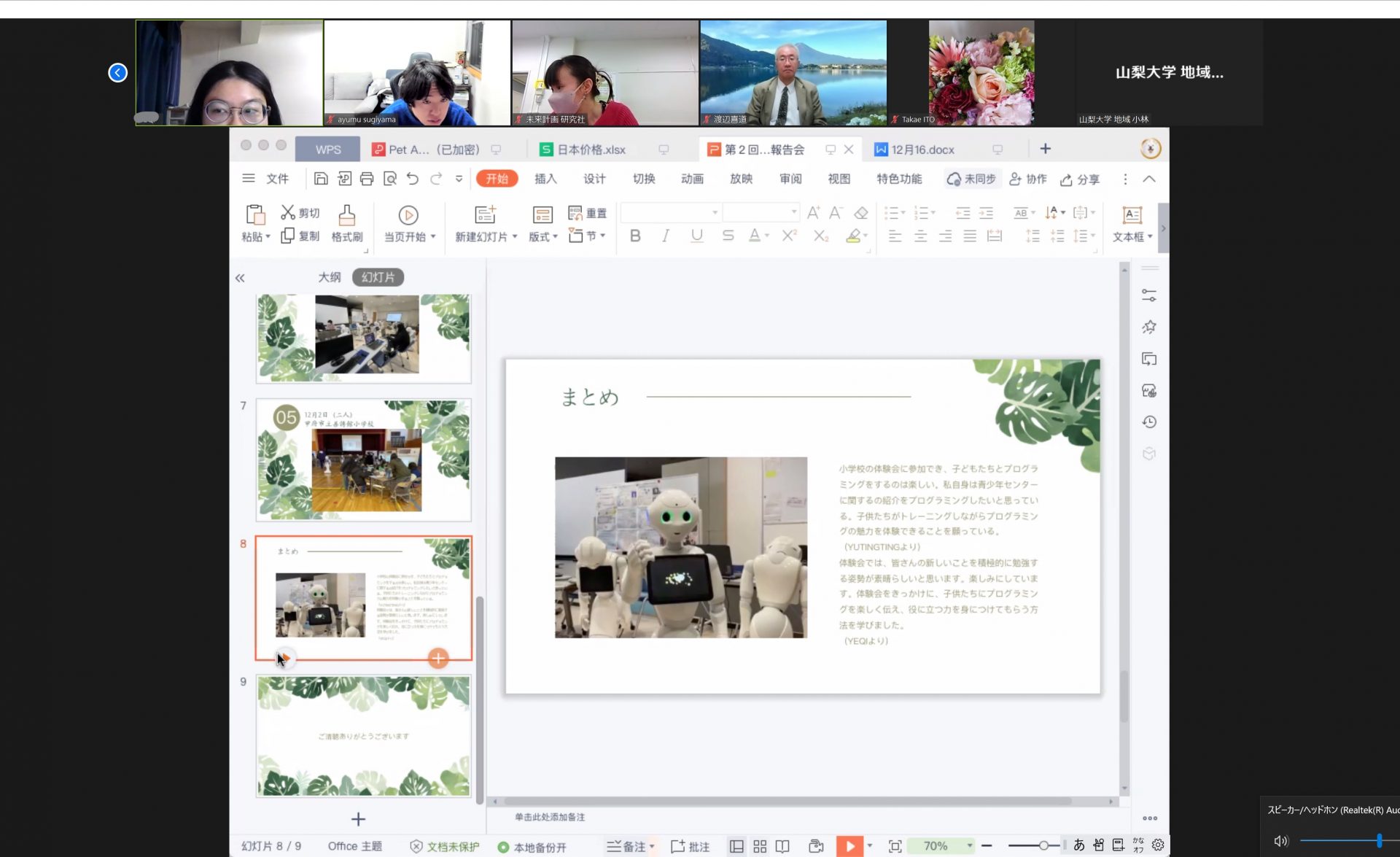 令和4年12月12日~20日、Miraiプロジェクト進捗報告会に参加しました