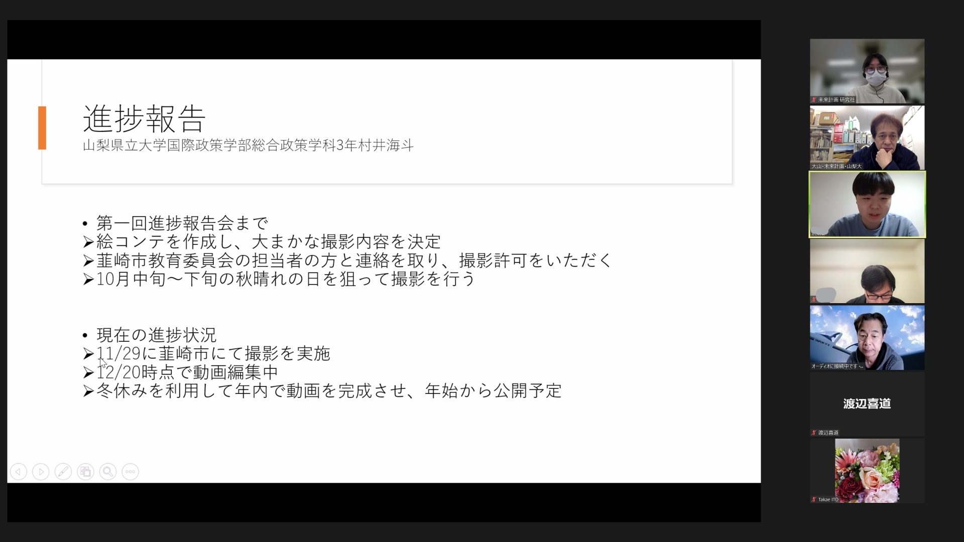 令和4年12月12日~20日の間の数日にわけ、Miraiプロジェクトの進捗報告会に参加しました。