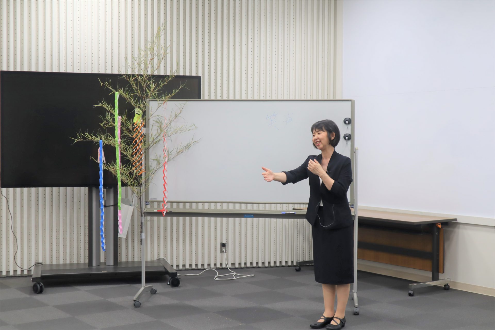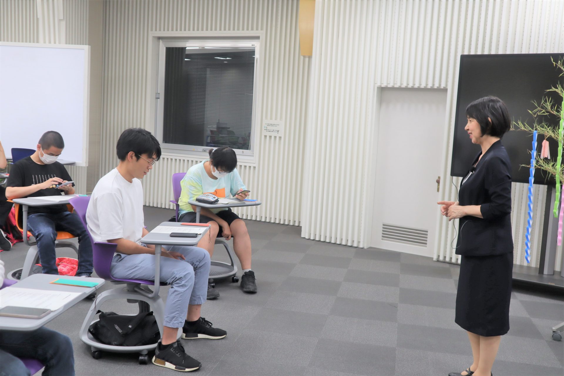 7月5日に、一般社団法人山梨県ニュービジネス協議会事務局から依田恵美様をお招きし、「ビジネスマナー講座Ⅱ」を開催しました。今回は、13名の留学生に電話のかけ方、メールの書き方を教えていただきました。